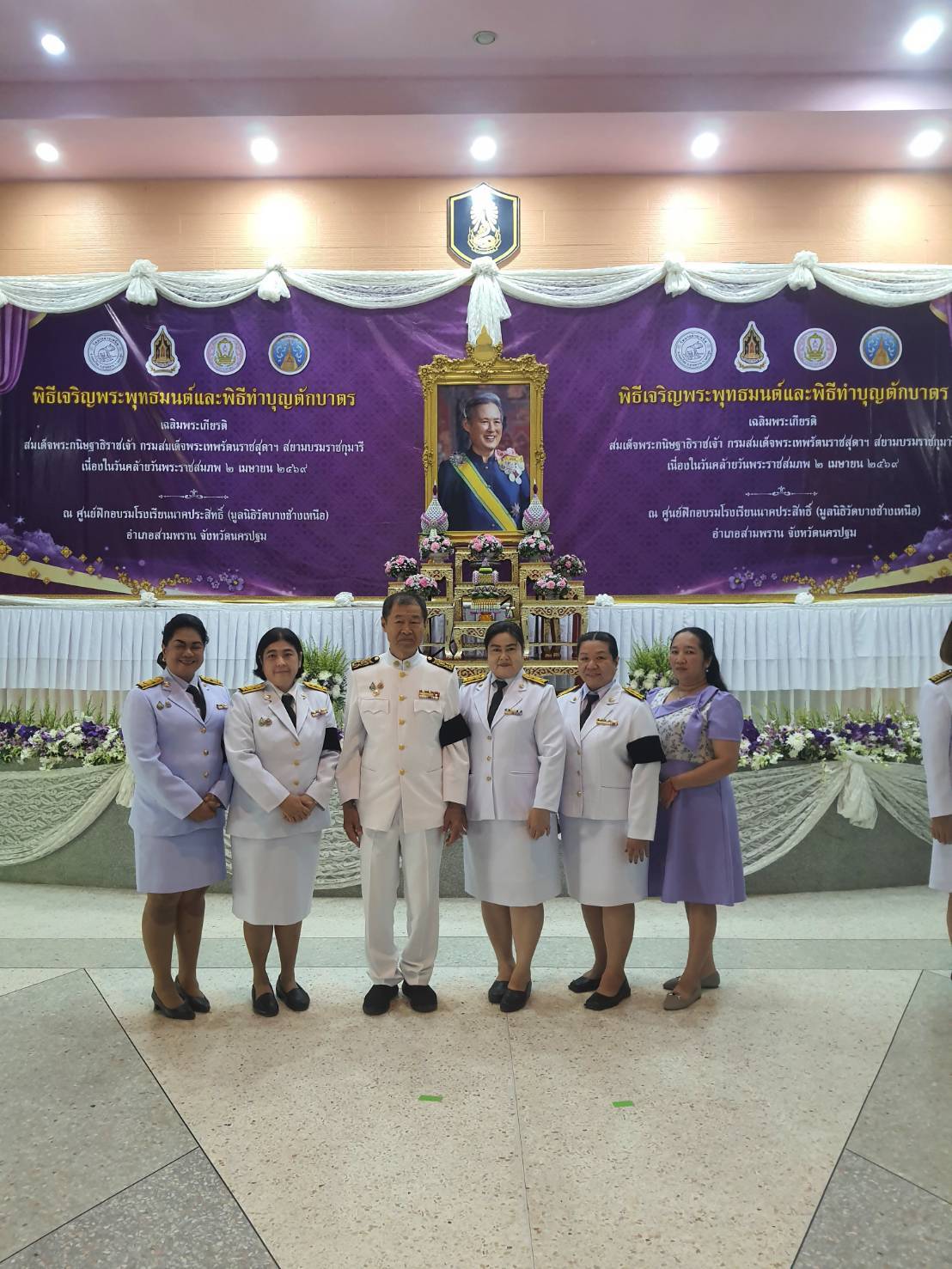 วันพฤหัสบดีที่ 2 เมษายน 2569 ณ ศูนย์ฝึกอบรมโรงเรียนนาคประสิทธิ์ (มูลนิธิวัดบางช้างเหนือ) อำเภอสามพราน จังหวัดนครปฐม นางสาวอโรชา นันทมนตรี ผู้ว่าราชการจังหวัดนครปฐม พร้อมด้วย รองผู้ว่าราชการจังหวัด หัวหน้าส่วนราชการ ข้าราชการและเจ้าหน้าที่จากหน่วยงานต่างๆ ตลอดจนนักเรียน นักศึกษาและประชาชน ร่วมพิธีเจริญพระพุทธมนต์ และทำบุญตักบาตรข้าวสาร อาหารแห้งแด่พระสงฆ์ โดยมีพระราชวชิรสุตาภรณ์ เจ้าคณะจังหวัดนครปฐม เจ้าอาวาสวัดบางช้างเหนือ นำคณะสงฆ์ พร้อมทั้งสามเณร ที่เข้าร่วมโครงการบรรพชาเฉลิมพระเกียรติฯ ออกรับบิณฑบาต เพื่อเฉลิมพระเกียรติและถวายเป็นพระราชกุศลแด่ สมเด็จพระกนิษฐาธิราชเจ้า กรมสมเด็จเทพรัตนราชสุดาฯ สยามบรมราชกุมารี เนื่องในวันคล้ายวันพระราชสมภพ 2 เมษายน 2569 อีกทั้งเพื่อแสดงออกถึงความจงรักภักดี และสำนึกในพระมหากรุณาธิคุณ ที่พระองค์ทรงมีต่อพสกนิกรชาวไทยทั่วทุกหมู่เหล่า ตลอดจนเป็นการเทิดทูนสถาบันพระมหากษัตริย์ ซึ่งเป็นศูนย์รวมจิตใจของคนไทยทั้งชาติ โดยมีนายเกรียงศักดิ์ พริ้งรักษา รองนายกเทศมนตรีตำบลอ้อมใหญ่ ได้นำคณะครูในสังกัดเทศบาลตำบลอ้อมใหญ่เข้าร่วมในครั้งนี้