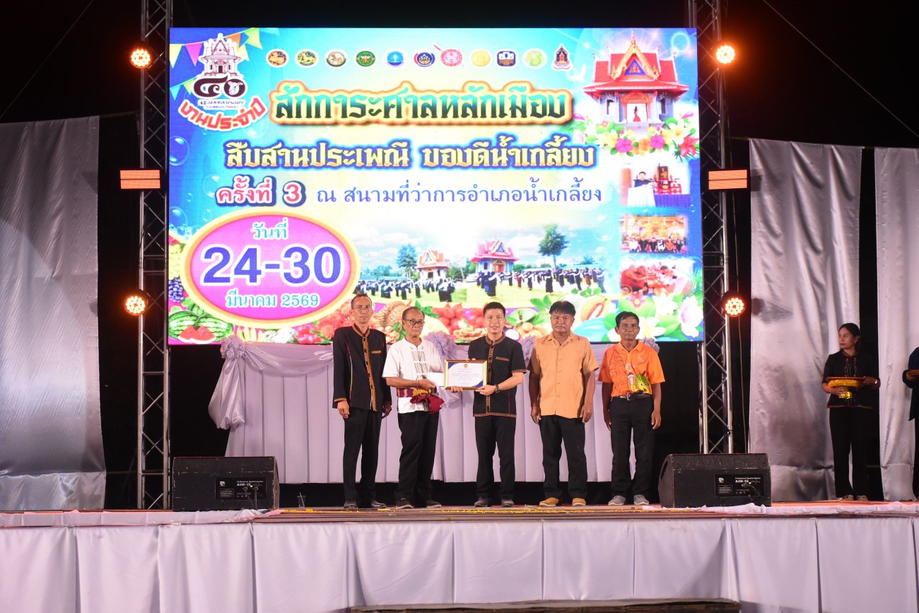 วันพุธ ที่ 25 มีนาคม 2569 องค์การบริหารส่วนตำบลคูบ นำโดยนายสมุย ไกรษี นายก อบต.คูบ พร้อมด้วยคณะผู้บริหาร สมาชิกสภา หัวหน้าส่วนราชการ รับรางวัลชนะเลิศการประกวดขบวนแห่อัตลักษณ์ งานประจำสักการะสานหลักเมืองสืบสานประเพณีของดีอำเภอน้ำเกลี้ยง ครั้งที่ 3 ประจำปี พ.ศ.2569